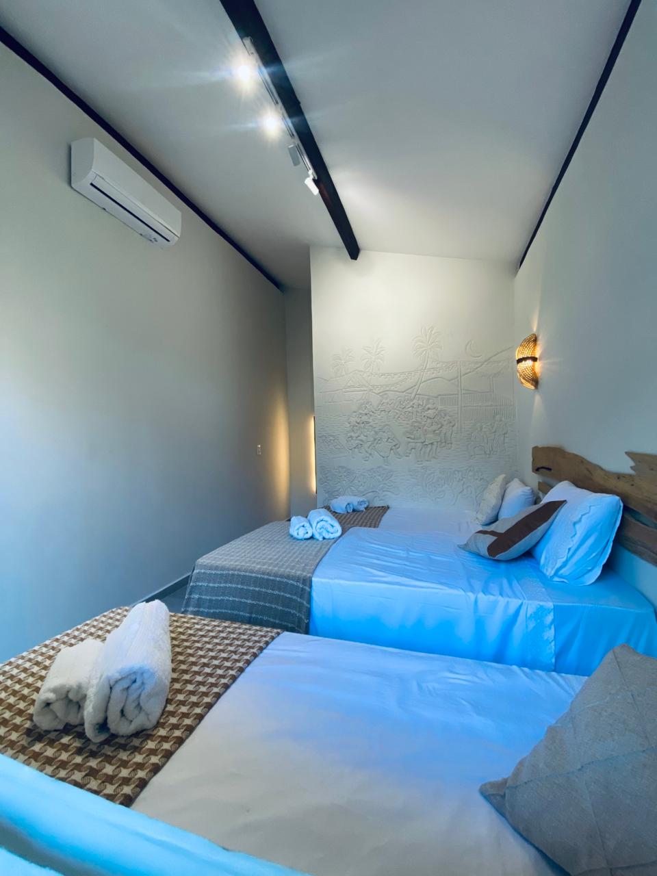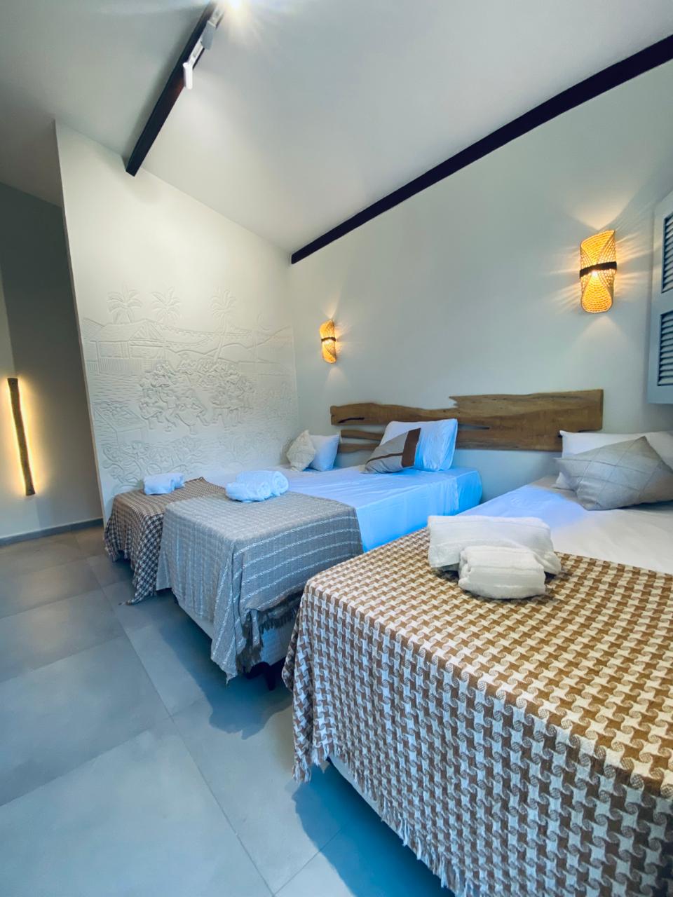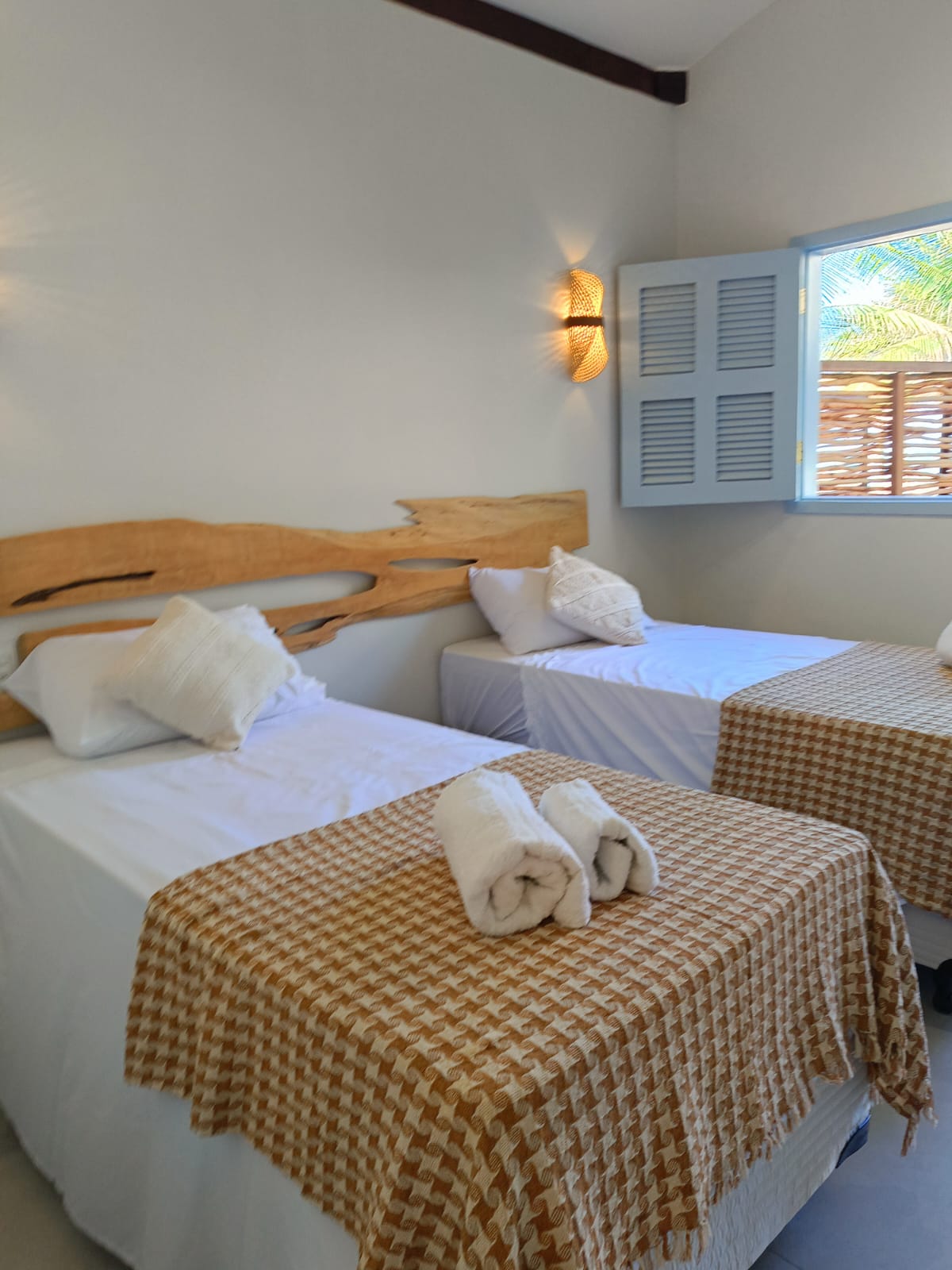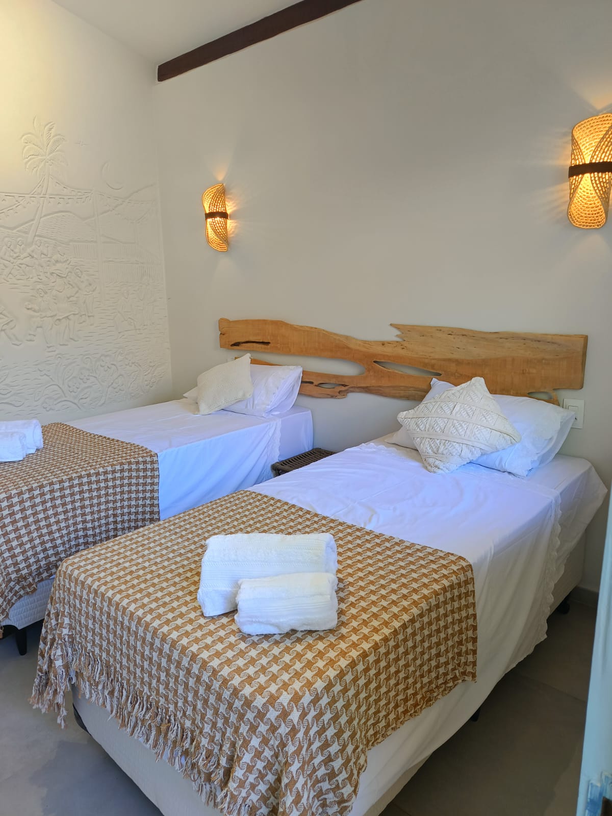 A Suíte Luxo Duplo oferece praticidade e conforto para dois hóspedes, ideal para amigos, colegas de viagem ou quem deseja camas separadas. Conta com duas camas box de solteiro, com opção de adicionar cama extra ou berço, permitindo acomodar até três pessoas com comodidade.